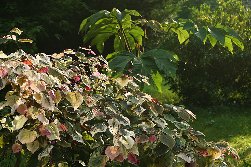 Hier die "verrückte" Cercis canadensis 'Carolina Sweetheart'. Auf Fotos fand ich die eigentlich "too much".