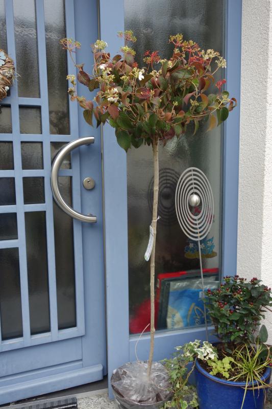 Für Sohn und Schwiegertochter war ich auf der Suche nach Viburnum 'Summer Snowflake' auf Stamm. In einer einzigen der abgeklapperten Baumschulen stand ein einzelnes schon etwas überfälliges Exemplar herum, für 80 Euro.