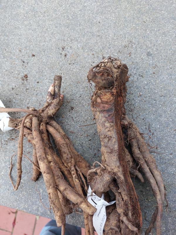 Bei Lois Choice ist die dicke Wurzel komplett von oben bis unten durchgeschnitten. Ich hoffe die fängt mit so einer großen Schnittwunde nicht an zu faulen. Eine ist mir schon mal nach dem pflanzen verfault