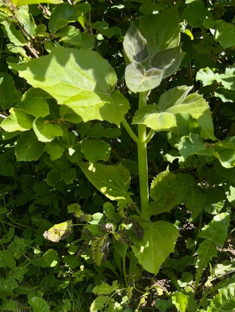 Paulownia kann Wurzelausläufer machen (meine macht es an einer Stelle jedes 2. Jahr) und kaum dass ich das Foto gesehen habe, war mein erster Gedanke Paulownia-(Sämling), die Blätter junger Triebe oder von Sämlingen können ziemlich unterschiedlich zu den Blättern von Bäumen sein.