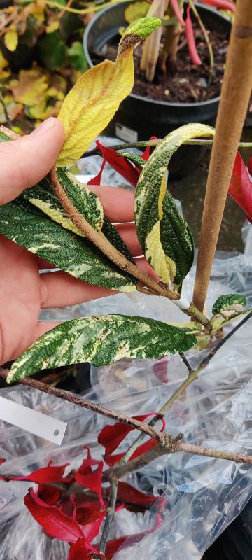 Unser DPD-Zusteller war heute vorbildlich. Er hat noch gefragt, ob Hanfpflanzen im Paket aus Holland sind. ;D Die Lieferung von Esveld war's. Parrotia 'Persian Lace' ist zwar etwas wackelig im Topf und einen der Euonymus 'Red Wine' hat der Kopfstand des Pakets einen Zweig gekostet, aber sonst ist alles zufriedenstellend, die Verpackung in Holzwolle hat den Rest gut geschützt. Von Viburnum rhytidophyllum 'Variegatum' bin ich ganz begeistert.