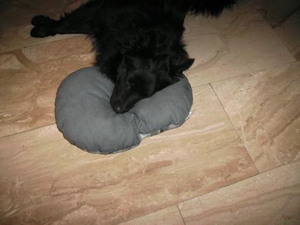 Bei uns mußten mit der Mama schon viiiiele Kissen dran glauben.... die hat in ihrer Jugend jedes neue Kissen kurz gemacht und zerlegt, auch Decken und Matten... ganz zu schweigen von Schuhen ect. ( alles so morgens zwischen 5 und 6 Uhr... :-), wo sich hier noch nichts rührt.... clever... Im Moment ist es so, daß ein Welpe bei der Mama auf dem Kissen schläft - die andere sich breeeeiiit macht auf dem anderen. Ich denke - drei Hunde... drei... ich muß wohl noch eins holen.... und dann mit diesem Modderfüßen nach dem Regen.... schööööön....