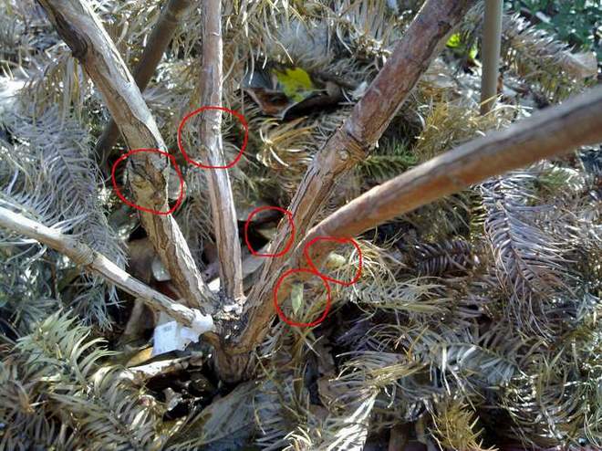 Bei R.grande aus dem zweijährigen Holz.Das gleiche gilt für R.sinogrande und R.magnificum.Ist der nächste Winter wieder normal,sollten die Pflanzen sich erholen.Zwei so lange anhaltende,kalte Winter hintereinander wären allerdings tödlich.Ich hoffe auf die Klimaerwärmung
