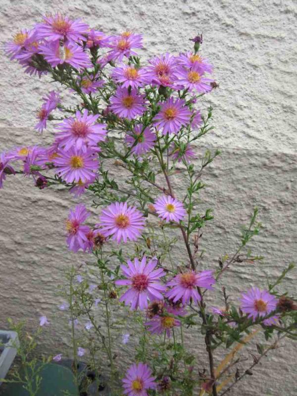 Ein untrügliches Zeichen dafür ist, dass die `Blaue Nachhut´ allmählich am Aufblühen ist. Hier in guten Jahren über anderthalb Meter hoch eigentlich gut standfest, leider immer etwas welkeanfällig. Irgendwie kann ich mich nicht so richtig mit ihr anfreunden, sie ist aber wirklich ein echter Spätblüher.Sie firmiert als Novi-Belgii, sticht aber aus den anderen Sorten durch Gestalt und Blütenstand ziemlich heraus, hat wohl eine andere Abstammung?...Wenn sich in ein paar Tagen aber bemerkbar macht, dass der Herbstasternzenit langsam überschritten ist, ...