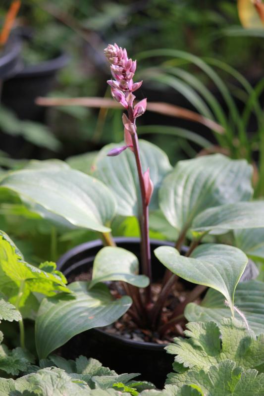 Einige Sorten stehen wirklich völlig unbeeindruckt da und schieben sogar noch Blütenstängel wie hier die Hosta 'Best of Twenty'. Sie ist noch relativ neu hier im Garten und ich mag die Farbe der Blatt-und Blütenstiele sehr gerne.
