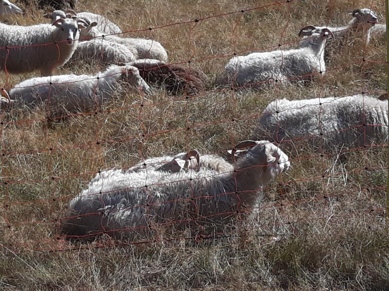 Was nicht so gut zu erkennen ist: Vorne liegt Grete und ihre Jungzibbe kuschelt sich eng an sie. Es sind diese Bindungen, die ein Leben lang halten. Zwei Zäunungen weiter und wir fangen an die Jungzibben raus zu fangen. Sie haben dann die Gelegenheit erwachsen zu werden und autark. Sonst hängen sie ewig an Mamas Rockzipfel. Man soll sich aber nicht täuschen lassen... wenn sie sich im nächsten Frühjahr wieder begegnen, ist die Bindung umgehend wieder hergestellt. Man liegt in "Sippen".