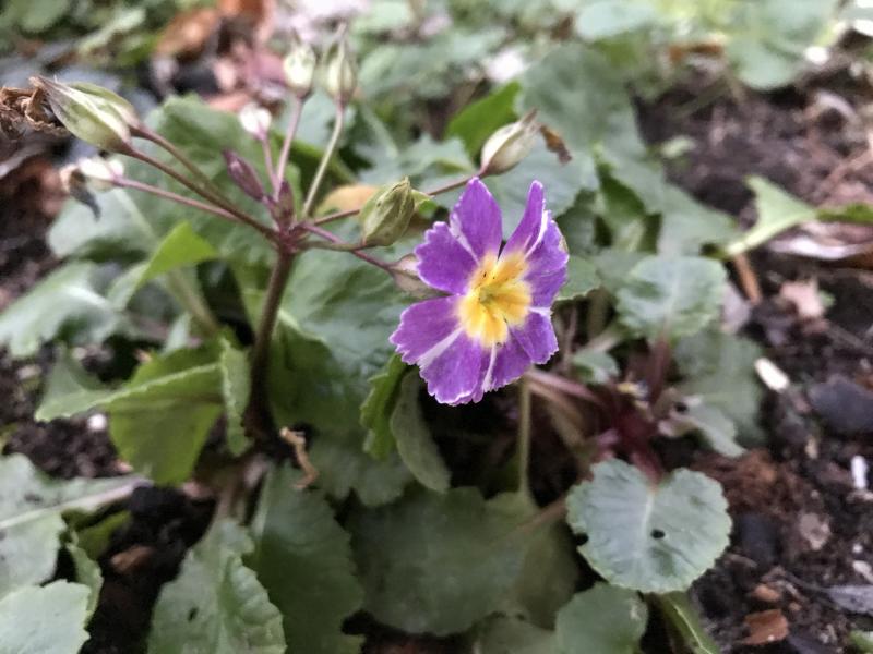 Im Herbst hatte ich befürchtet das sie eingeht denn ich hatte gelesen das sie wintergrün sei. Da ich auch Axel ein paar Pflanzen gegeben hatte war mir seine Einschätzung wichtig denn seine zeigten noch keine braunen Stellen. Er hatte aber eine Info gefunden die dieses Primelchen als nicht wintergrün beschrieb. Und jetzt treibt sie zu meiner Freude wieder aus. Bestimmt etwas früh aber damit muss sie klar kommen.