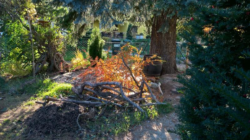 Clethra 'Ruby Spice' färbt recht hübsch, die pflanz ich aber erst nächstes Frühjahr aus, sie soll das Herbstrot- und -orange ein wenig aufhellen.