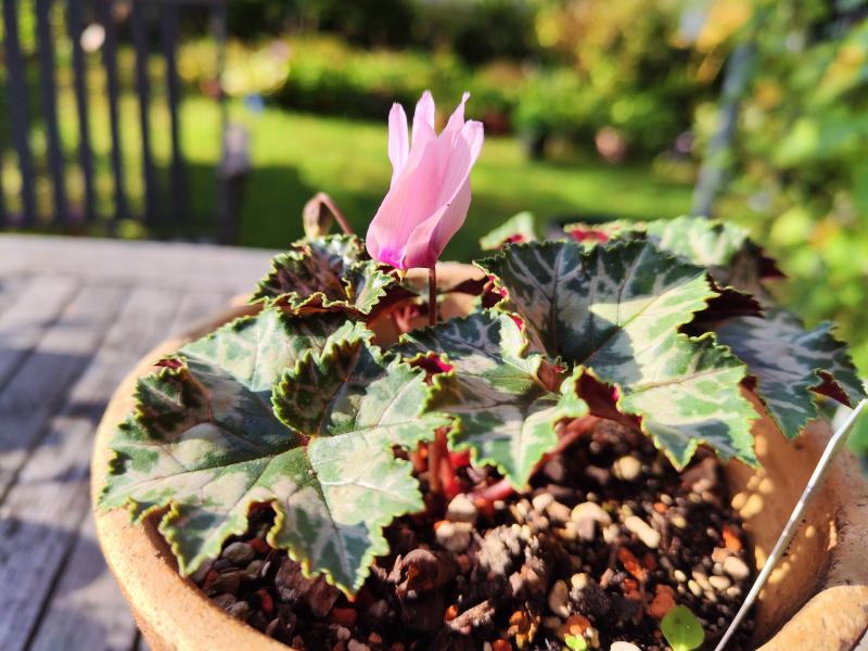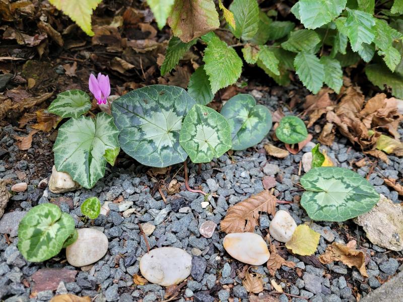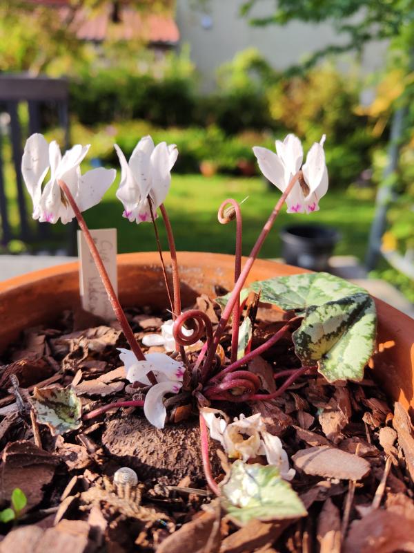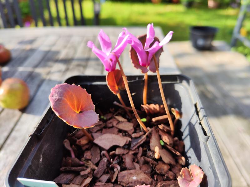 Absaat von C. mirabile 'Tilebarn Nicolas', 2019 ausgesät ( Samen von der Cyclamen Society). Da stimmt nichts, schön ist trotzdem.