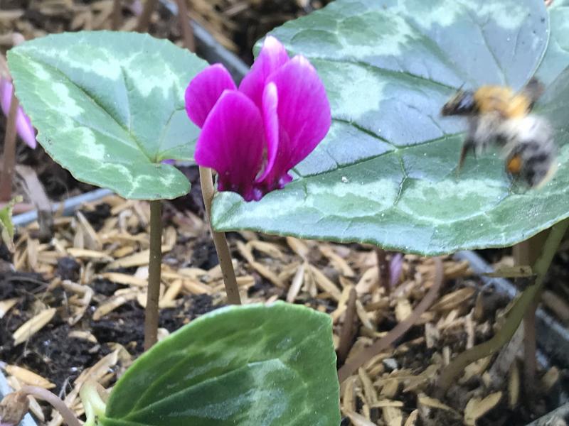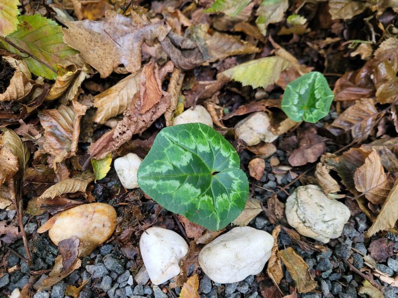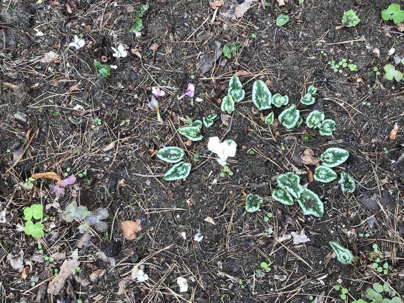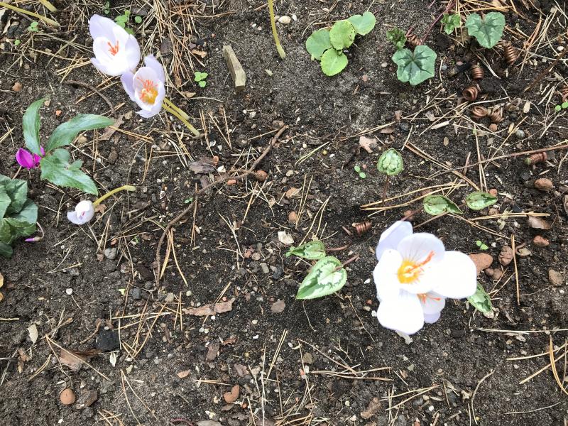 Die Krokusse sind schnell da, die Cyclamenblätter lassen auf sich warten.