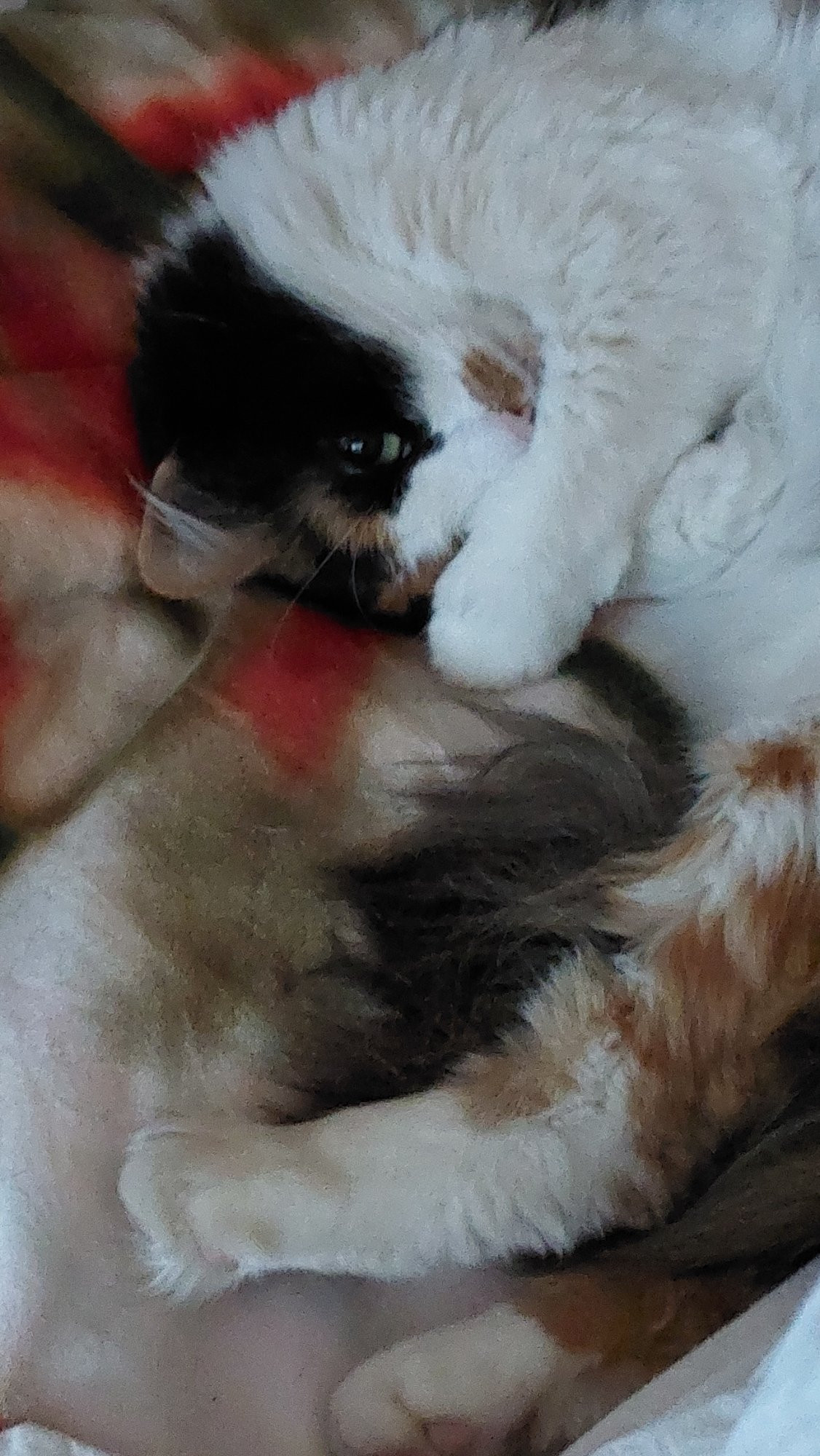 Beneidenswert "wurde gut gefressen".Polly ist weiterhin im Hungerstreik. Auch das leckere Mousse....igitt. Die Freigänger werden sich heute Nacht wieder freuen. Madame bevorzugen mein Bett. Meine scharchende Fusswärmerin. Pennt schon wieder dort.