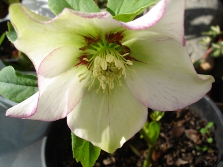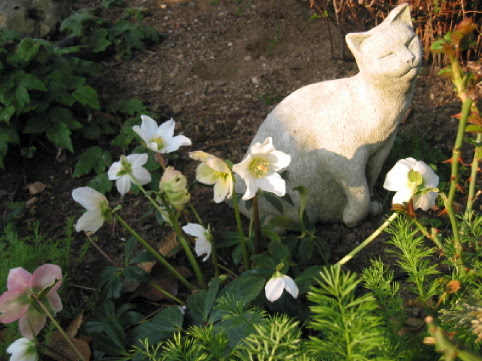 Die H. nigers blühen seit Mitte Dezember; die meisten sind nun verblüht.Diese hier aber hat erst vor kurzem ihre ersten Blüten geöffnet; genau wie ihr "Kind" am linken Bildrand