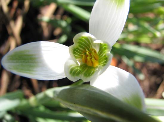Leider geht es hier langsam mit den Galanthen zu Ende, aber sie sind trotz des vielen Schnee so schön gewesen - ganz verliebt bin ich in dieses. Vermutlich ein elwesii, aber der Sinus.-Fleck ist doch niedlich, oder