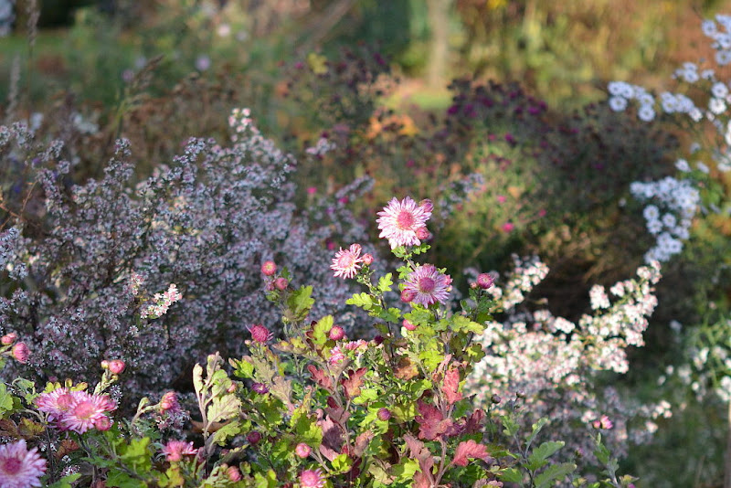 Einstweilen kümmere ich mich um das Bildmaterial. Dendranthema 'Nebelrose' vor Symphyotrichum lateriflorum 'Lady in Black'.