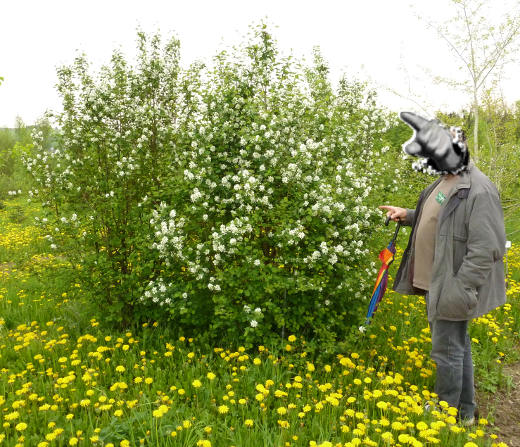 Der Gartenteil ist relativ neu und nach Vegetationstypen gegliedert. Stellvertretend für viele andere Gehölze Amelanchier alnifolia.Ihre Blüten müffeln.