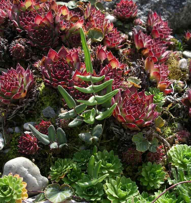 Vor ein paar Jahren habe ich von knorbs eine Pflanze von Pellaea atropurpurea bekommen. Dieser nordamerikanische Farn erwies sich als problemlos und hat sich inzwischen im Gestein prächtig entwickelt.