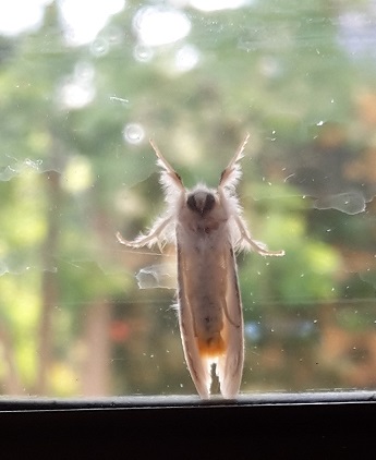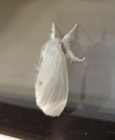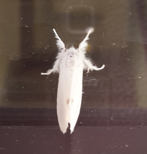 Heute fand ich an der Glasscheibe am Hauseingang diesen wolligen Gesellen. Ich konnte vom Hausflur aus ungeniert "unter den Rock" knipsen und frage mich nun, ist das ein Goldafter (Euproctis chrysorrhoea) oder ein Schwan (Euproctis similis)?