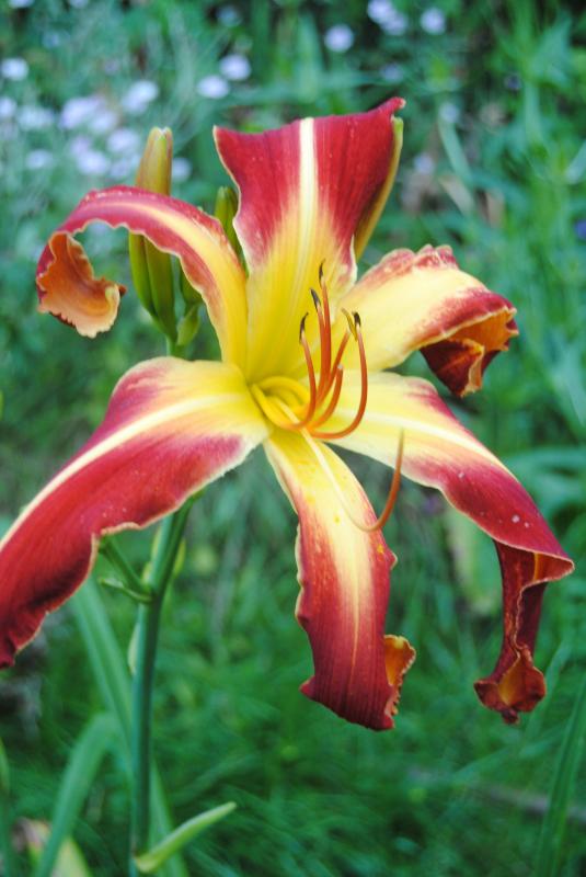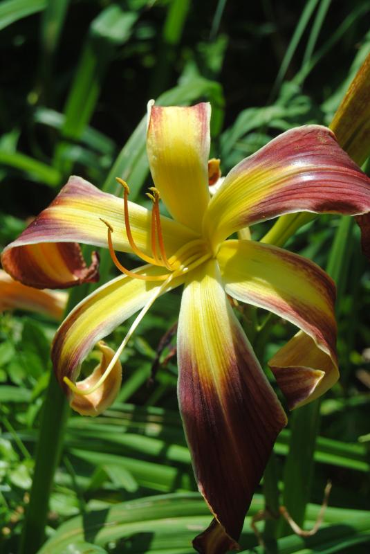 Hier reiche ich noch ein Foto nach von einer Blüte, die morgen blühen wird und heute schon an den Sepalen den für Taglilien ungewöhnlichen 'Zwirbelbart' entwickelt.Der Berleyer Zwirbelbart fängt an zu blühen. Er hat seinen Namen von den Sepalen, die sich bereits einen Tag, bevor die Blüte öffnet, zurückrollen und dann auch zurückgerollt beiben.
