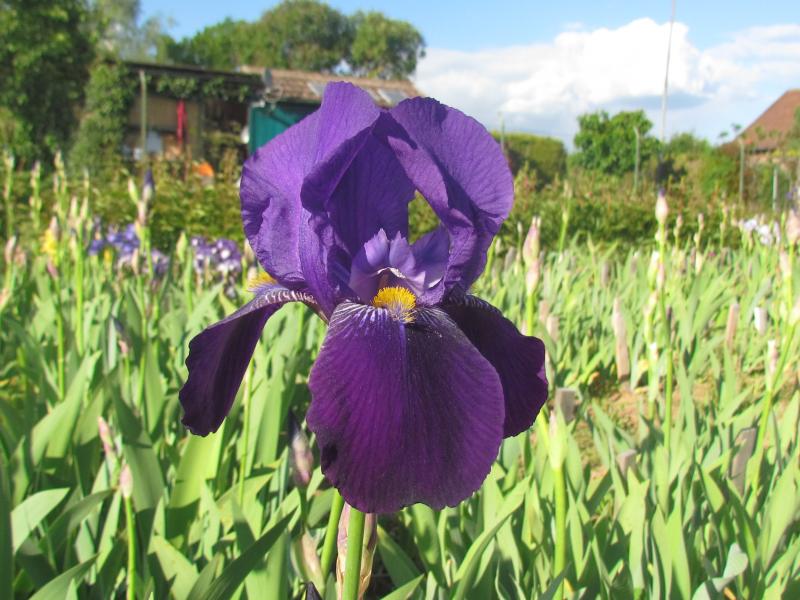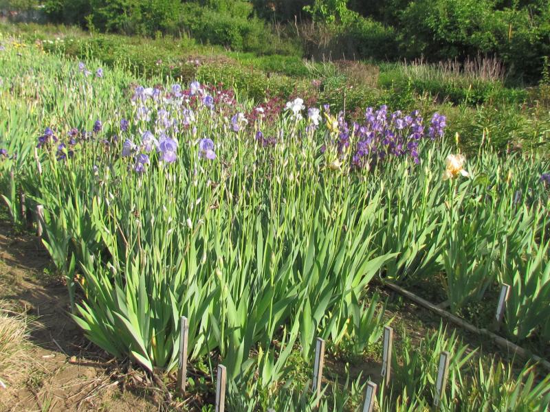 Hier ist heute die erste hohe Iris pallida aufgegangen, Iris pallida var. dalmatica "Wichmann" steht auf dem Etikett.