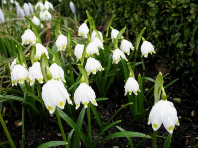 Im Februar hatte ich ca. 50 grüne Spitzen von Leucojum Sämlingen gezählt. Jetzt blühen etwa 25.