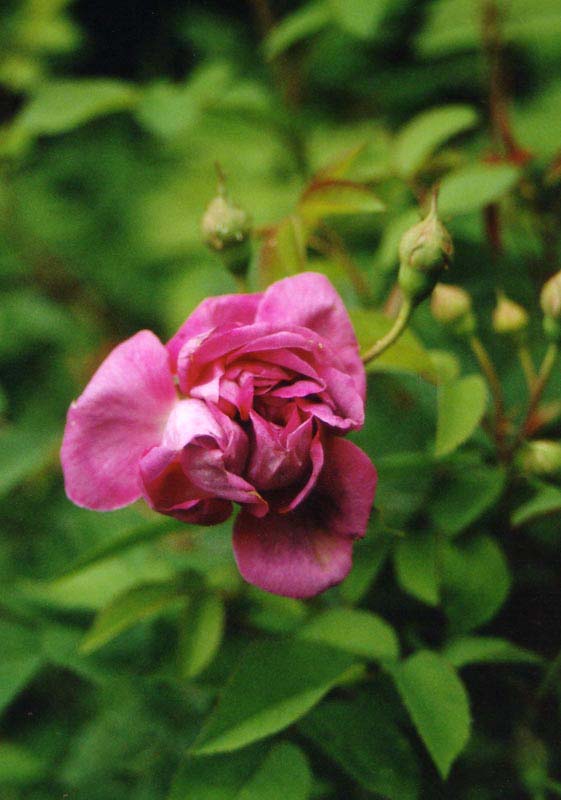 Bevor es tatsächlich Frühling wird, hätte ich gerne noch eines meiner Kuckuckskinder identifiziert.Dieses Röslein, eines meiner ersten, hatte ich vor 3 oder 4 Jahren mal im Baumarkt gekauft, im Austin-Topf mit dem Etikett `Tuscany Superb`.Hübsch ist sie ja, ähnelt aber TS nicht wirklich, finde ich. Sie ist bisher ca. 1m groß, nach Wuchs und Bestachelung könnte es eine Gallica sein. Ach ja, ihre Staubgefäße bekommt man nicht zu Gesicht.Kommt sie vielleicht jemandem von Euch bekannt vor? Wäre doch schade, wenn die Kleine mit dem falschen Namen angesprochen würde; außerdem brauche ich dann ja noch die richtige Tuscany Superb