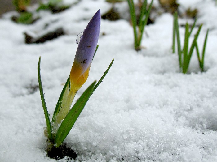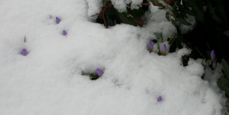Heute im Garten.Meine schon im Januar knospenden Kroküsse stippen nur noch zaghaft durch die Schneedecke.