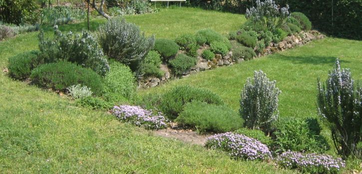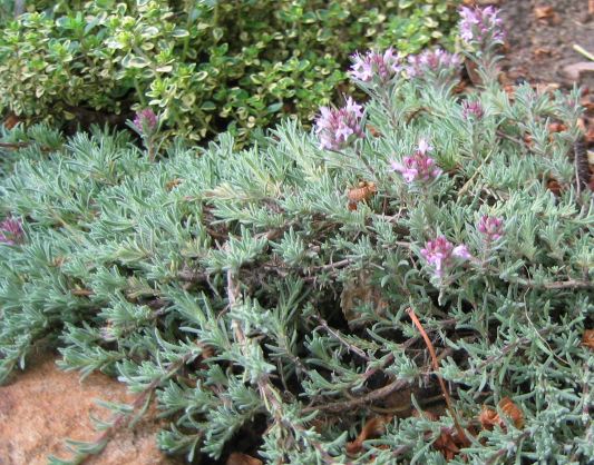 Und ganz toll finde ich den Kümmel-Thymian Thymus herba-barona. Er hat ein kräftiges Kümmelaroma und bildet schöne Matten. Im Winter zieht er etwas ein. Manchmal hat man den Eindruck er sei abgefrohren aber dann treibt er um so munterer im Frühjahr wieder aus. Teilweise hat er sich im Garten bereits versamt. Es lassen sich sehr leicht Ableger machen, weil die Ranken gut bewurzeln.