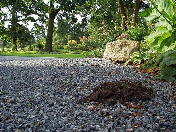 wow... der Maulwurf war aber hart im Nehmen ;-)Bei uns sind es lange Linien im Schotter, die entweder leicht erhaben sind oder aber wie weggescharrt aussehen. Am Anfang oder Ende so einer Linie ist dann oft ein kleines bißchen Erde. Aber lang nicht so viel wie bei Eurem Supermaulwurf ;-)liebe GrüßeDiana