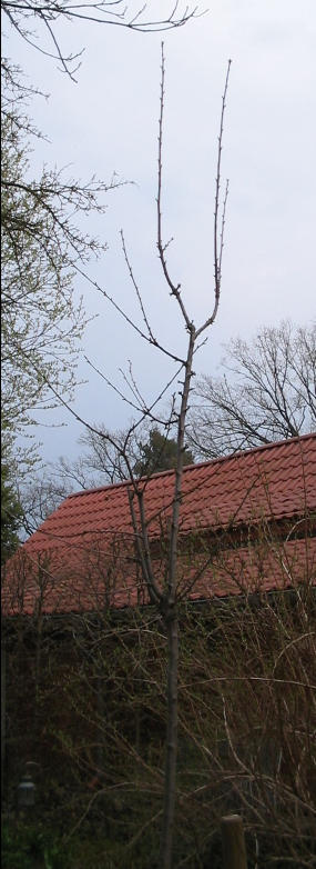 Schließe mich an. Das ist eine Frechheit. Leider aber gar nicht mal so selten. Oile, ich weiß, das es selbst gegebene Standards des BdB (Bund der Baumschulen oder so ähnlich) gibt. Ich kenne sie nicht, kann mir aber nicht vorstellen, das der Baum ihnen entspricht.Soweit ich das auf dem Foto sehen kann, gehen z.B. die Äste aus dem Quirl in der Mitte des Stammes alle auf ziemlich gleicher Höhe ab. Wie Ellison schon schrieb, gehören sie eigentlich in die Krone.Gerade bei Süßkirschen muß man darauf achten, das diese späteren Gerüstäste nicht alle auf gleicher Höhe vom Stamm abgehen, sondern einen Abstand zueinander haben. An diesen Stellen fangen die Kirschen später oft an zu bluten. Ich vermute, das der Zug/Druck der Äste auf einen einzigen Stammpunkt zu groß wird. In welcher Höhe (in cm) gehen diese Äste denn ab?