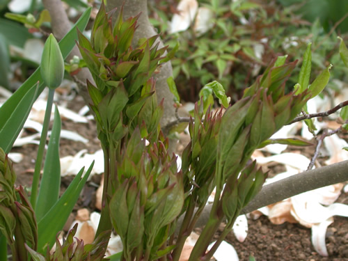 hier Cytherea, im Herbst gepflanzt und schon mal 3 kleine Knospen. Sieht man hier allerdings nicht.