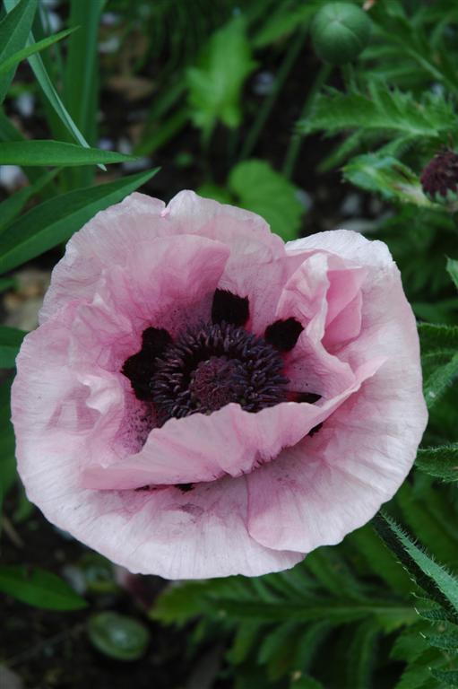 Als letzten Freitag mal die Sonne ab und zu schien, hat sich ein vorwitziger Türkenmohn-Sämling in Rosa mit Basalflecken entknittert.Seine 20 Geschwister haben sich nicht getraut und stehen immer noch mit dicken geschlossenen Knospen da.und frieren bei 11°.