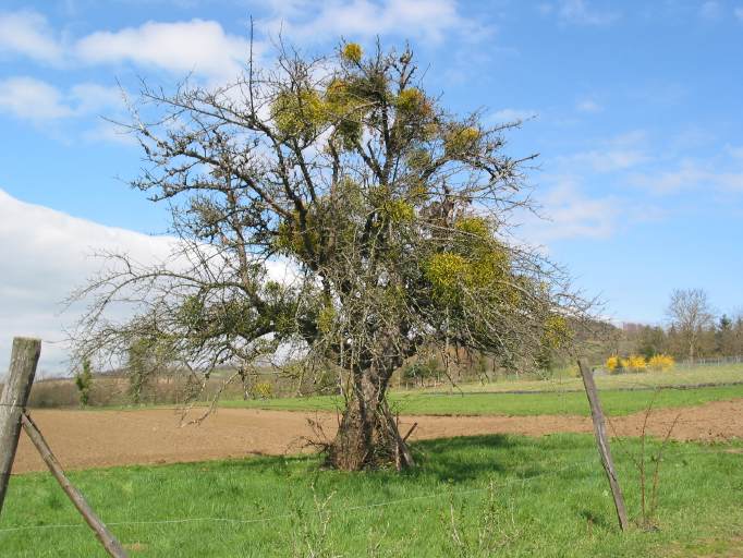 Alter ObstbaumEin Wirt mit vielen schmarotzenden Gästen (Viscum album).