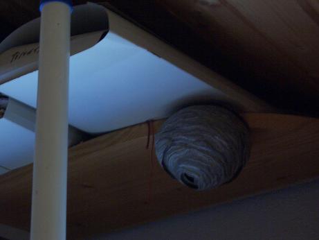 So sieht das Wespennest jetzt aus. Und es scheint noch größer zu werden, die Wespen haben schon wieder begonnen eine neue Schale zu bauen.
