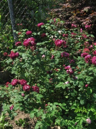 ein paar Sträucher kann ich auch zeigen. Bei den meisten ist es allesdings schwierig, den Habitus zu zeigen, da bei mir alles sehr eng zusammenwächst ;)Hier ist zum Beispiel Reine de Centfeuilles. Die schneide ich, wie eigentlich alle einmalblühenden Rosen, nach der Blüte und dann nochmals im Frühjahr zurück.