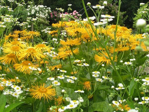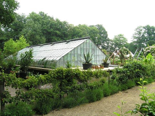 Im Februar als ich sie nach den Helleborustagen bei Hans Kramer besucht habe, hat sie mir den Garten gezeigt und ich nahm mir vor, ihn unbedingt im Sommer noch mal anzuschauen, gestern war es so weit, hier nun ein paar Eindrücke aus diesem Garten.Eindrucksvoller Mittelpunkt ist das viktorianische Gewächshaus mit originalgetreuen Glasschindeln gedeckt, die leider immer wieder von Rowdies zerstört werden. Bei einem jährlichen Etat von 1000€, die die Gemeinde für den Garten zusteuert, ist dieses Kleinod ein teurer Schatz.