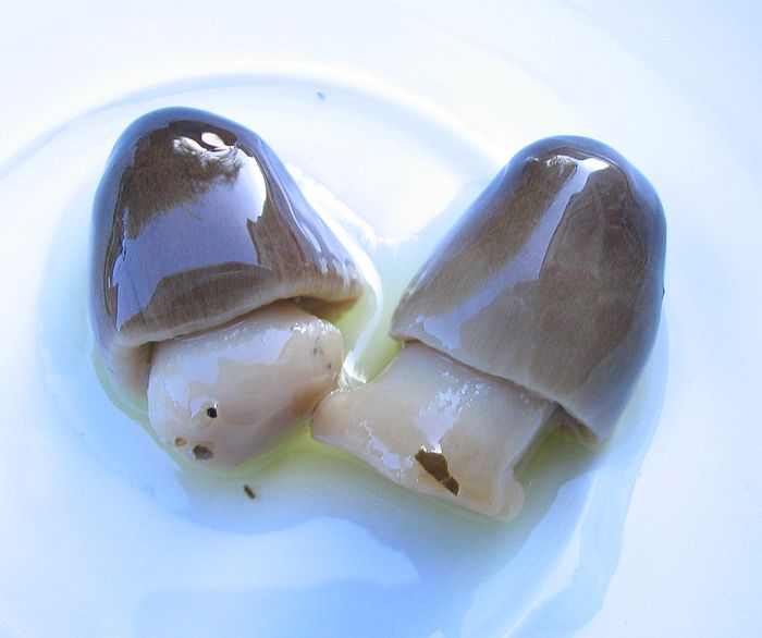 Wer kann mir sagen, wie diese köstlichen Pilze heißen, die nach italienischem Rezept (sie sollen allein schon deshalb gewinnen) in Olivenöl mit Lorbeerblatt eingelegt sind und sich an einem so herrlichen Sommerabend wunderbar auf Ciabatta verspeisen lassen.Herz, was willst du mehr?