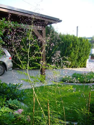 Gestern ergab sich eine günstige Fotosituation für das 3 m hohe Thalictrum 'Elin', das keine Stütze braucht.