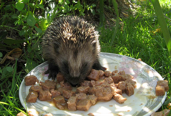 Deshalb bekommt meine 5 Köpfige Igelfamilie, Mutter mit 4 Jungen, ab und zu als Beigabe Katzenfutter verabreicht. Man sieht es schmeckt den Kleinen vorzüglich. Nach einer halben Stunde ist der Teller blitzeblank.LGFuliro