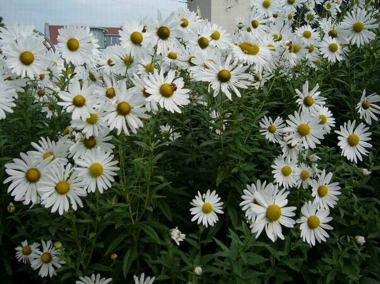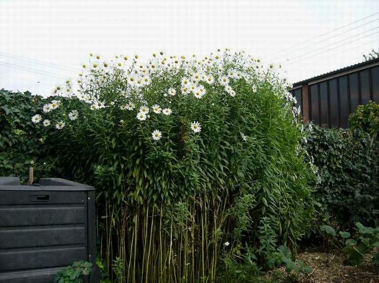 Steht schon jahrelang im Garten und weiss bis jetzt keinen Namen ???Blüht momentan und ist ca. 150 cm hoch. Blüten sind Margariten ähnlich.