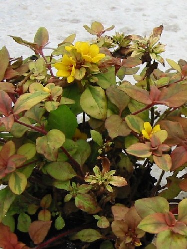 Heute bot ein Gärtner auf dem Wochenmarkt eine Lysimachia-Sorte/-Art an, die eine kräftige, "weihnachtssternrote" Laubverfärbung aufwies. Sie soll winterhart sein, wärend des Sommers grün sein und weiß blühen.Kennt jemand diese Pflanze und weiß näheres über sie zu berichten?