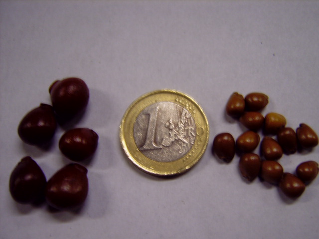 Hallo, hab ein Problem. ! Links liegen Staphylea pinnata Samen, und was liegt rechts ? Nein, nicht der EURO ! Weiter rechts ! Literatur hilft mir nicht weiter, doch vielleicht Euch der Hinweis, das sie aus der Staphylea-Gruppe in Dortmund Rombergpark gesammelt wurden . Danke für Tips, und Grüße und geruhsame Festtage an Alle. Franklinia.Nein, es ist kein Rätsel, ich benötige wirklich eine Antwort.