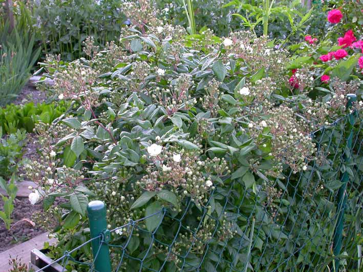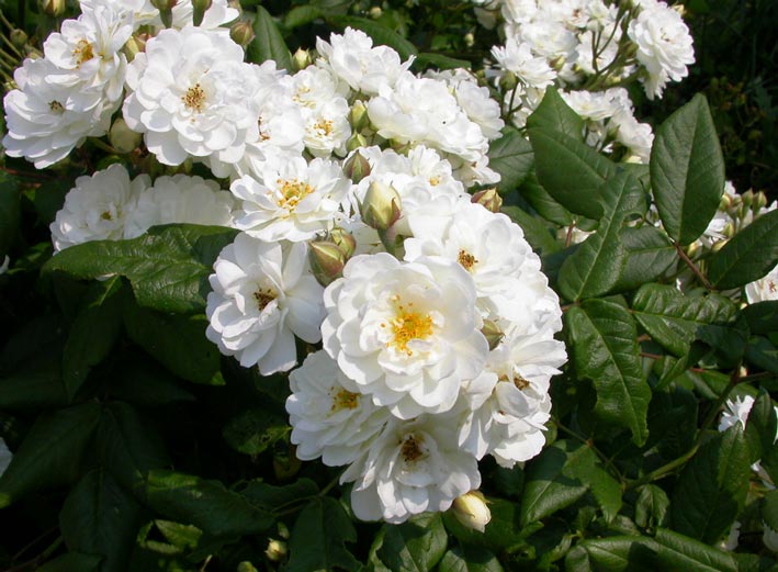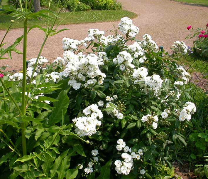 Der Duft scheint dir sehr wichtig, sonst hätte ich gesagt, schau dir mal 'Waterloo' von Lens an... Es ist auch ein Trier-Abkömmling, nach Pemberton-Manier von Lens nachgezüchtet. Ich brauchte für die Rose eine Eingewöhnungsphase, aber nach zwei Jahren hatte ich ihr Wuchsverhalten verstanden. (Aus der Zeit gibt es noch einige Flüche meinerseits hier im Forum. ;) Waterloo ist durchgehend kerngesund, bildet einen überhängenden Strauch von 1,50 bis 2 m Höhe, je nach Schnitt mit sehr großen bis mittleren, aber immer üppigen weißen Blütentrauben. Die halbgefüllte Einzelblüte ist entzückend. Das Laub ist wunderschön dunkelgrün und bleibt lange am Strauch. Wenn es einen Duft gibt, habe ich ihn noch nicht entdeckt.Ich hänge mal ein paar Fotos an...