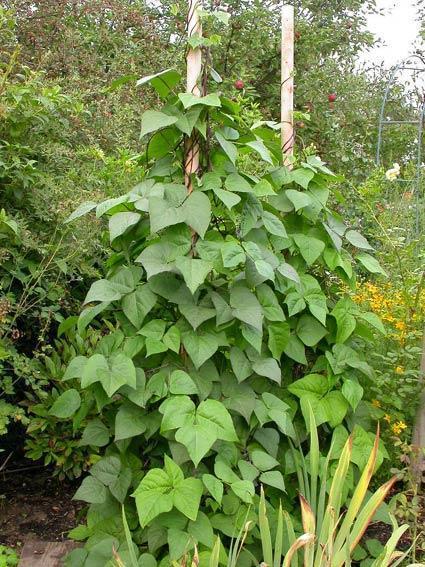 Ich finde Bohnenzelte ziemlich platzraubend. Im letzten Sommer habe ich Blauhilde an Einzelstangen gezogen, da braucht jede Stange nur etwa 50 x 50 cm. Paßt überall dazwischen... allerdings werde ich nächstes Jahr gut rauhe Stangen nehmen, von den glatten flutschen die Bohnen immer wieder runter...