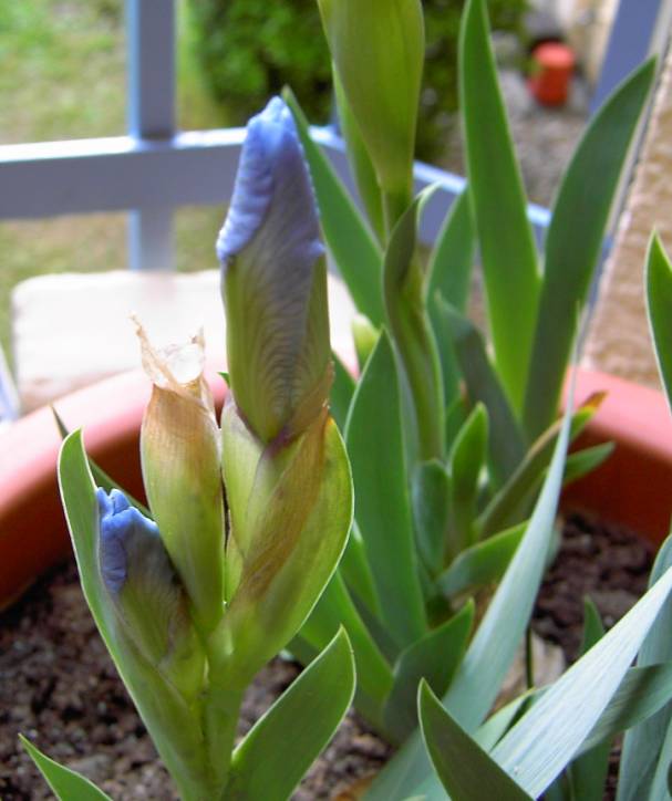 Wenn du die Möglichkeit hast, Lilia, dann pflanze die Iris besser ins Freiland. Da sind vor Blattläusen besser geschützt. Sie benötigen auch keinen Winterschutz.Iris gehören mit zu den ganz harten Pflanzen, die leiden eher, wenn man sie päppelt. Die große Zahl der Blattläuse ist sicher auch darauf zurückzuführen, daß die Iris durch den Winterschutz zu früh und zu stark ausgetrieben sind. Solche Triebe sind zart und saftig, ideales Blattlausfutter.die französischen Blattläuse sitzen in Trauben in den Dingern