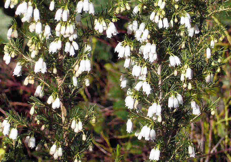 Erica lusitanica steht zur Zeit in Vollblüte, wie das heutige Foto zeigt. Die Pflanze ist erst kaum 1 m hoch. Vor etwa 20 Jahren habe ich die Art schon einmal gepflanzt, und sie wuchs mit dickem Stamm auf über 2,5 m Höhe heran. An Winterschutz habe ich damals überhaupt nicht gedacht, so dass der Killerwinter 1995/96 ungehindert zuschlagen und zum Exitus der Pflanze führen konnte.http://trachy.dyndns.org/Heinrich/Erica-lusitanica.jpg