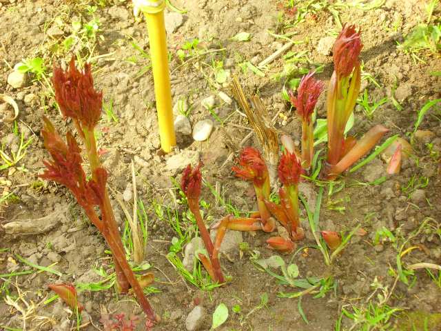 Hallo !Wie weit sind Euere Paeonien dieses Jahr schon? Bei mir sind sie schon beängstigend hoch gewachsen. Hoffenlich gibt es keinen starken Frost mehr.Liebe Grüße von elis.