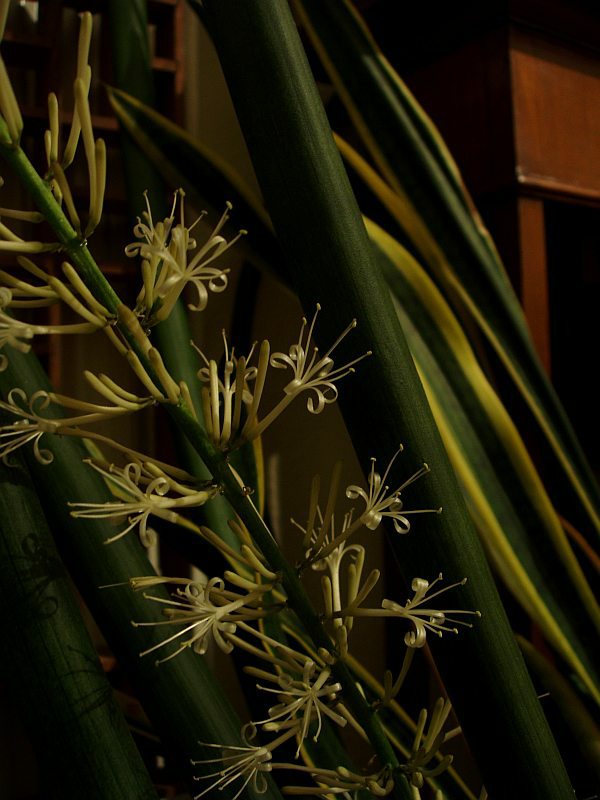 wieder einmal blüht meine sanseveria cylindrica. :Dund wie sie duftet! das ganze zimmer ist voll von schwerem parfum.
