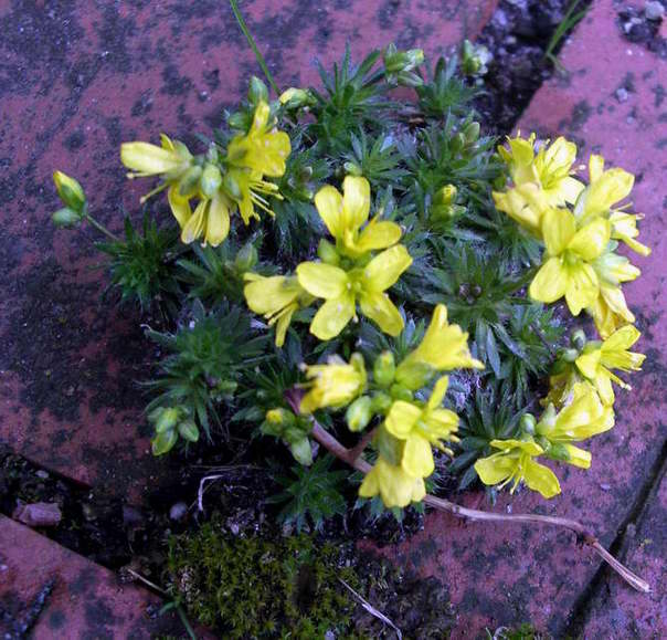 So, dann will ich mal zeigen, was bei mir im Alpinum derzeit blüht.Naja, nicht direkt im Steingarten, sondern in einer geschützten Pflasterfuge blüht schon seit Wochen dieses kleine Hungerblümchen.