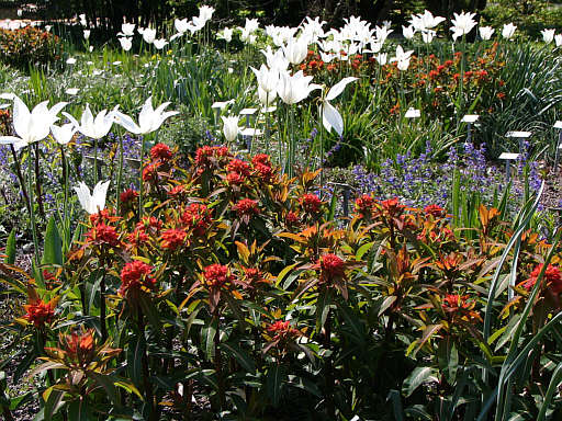 Naja - ich habe 'Dixter'. In Weihenstephan gibt es ein wunderschönes Beet, in dem u.a. diese Euphorbie "halbkugelig" wächst. Natürlich sind die Horste schon älter und Ausläufer werden abgestochen. Die Pflanzen formen dann (ohne Schnitt) schon erkennbare Horste, die recht dicht wirken. Große orangene Kugeln sozusagen. Und die hätte ich eben gerne möglichst schnell 8)P.S.Das Photo ist leider überbelichtet - aber gerde im Hintergrund kann man die geschlossene Wuchsform der E. gut erkennen.