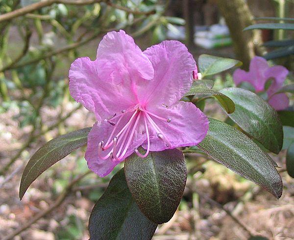 Soeben ist bei mir Rh. mucronulatum aufgeblüht. Eigentlich eine sehr robuste Wildart aus Nord-Ost Asien und Nord-Japan, die sich aber in meinem Garten außerordentlich schwer tut.